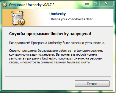 Після установки Unchecky запускає службу, яка в реальному часі контролює всі програми, які ви намагаєтеся поставити і автоматично відсіває небажані елементи. Природно, краще не допустити встановлення тулбаров, рекламних програм і «нібито корисних утиліт», ніж потім болісно намагатися позбутися від них. Подивитись результати роботи програми можна у будь-який час, натиснувши на піктограму програми на робочому столі.