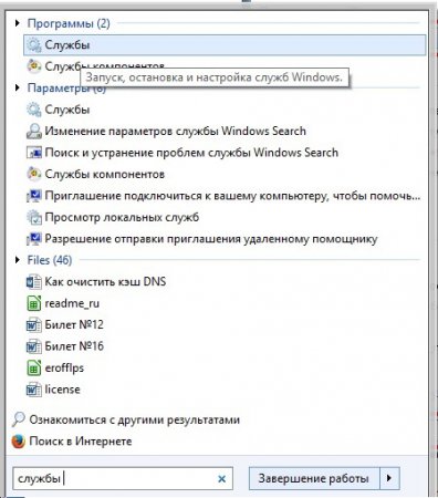 А що робити, якщо «захисник Windows» не запускається? Для цього заходимо в меню «Пуск» і в рядку пошуку вводимо слово «Служби».