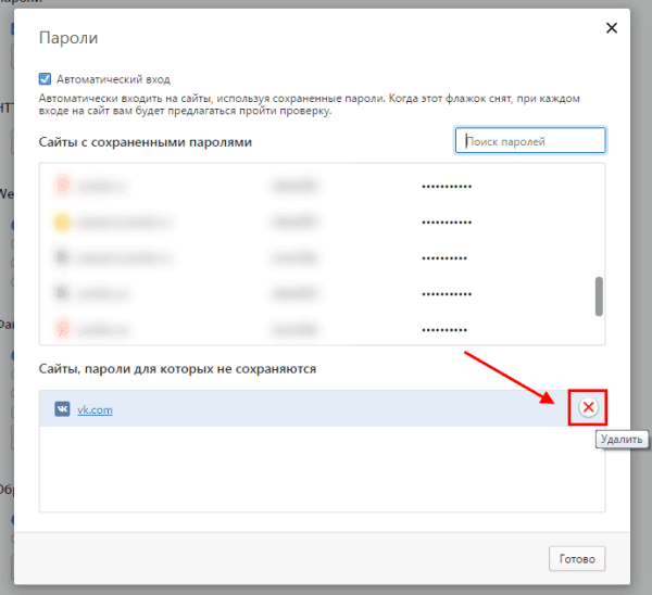 Вам лише потрібно видалити його з цього списку, натиснувши на хрестик. Після цього ви зможете зберегти пароль у браузері Опера для цього веб-ресурсу.