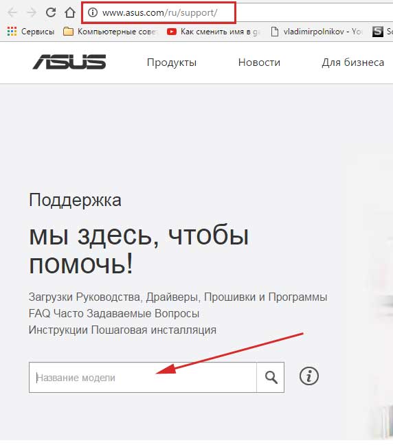 Переходимо по ссилочку http://www.asus.com/ru/support/. У віконці пошуку вбиваємо необхідну модель нашого ноутбука: