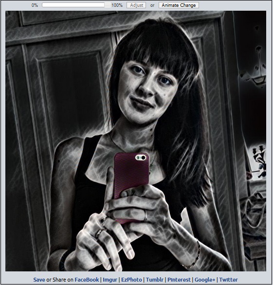 Англомовний сервіс lunapic.com дозволить вам зробити арт з безлічі представлених на сервісі шаблонів. При цьому він має ряд приємних особливостей: за допомогою смужки регулювання можна відстежити всі зроблені зміни, ви можете переглянути анімацію змін, а також використовувати різноманітний інструментарій графічного редактора (рядок інструментів ліворуч).