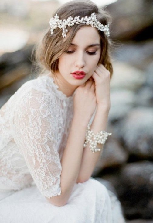 Аксесуари для весільної зачіски в 2017 році представлені делікатними обідками і віночками з кристалами і перлами. Ніжні плетені кришталеві гілки