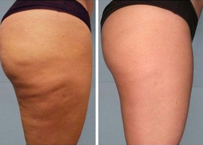 Після застосування цього засобу ваша шкіра буде м’якою і зволоженою, а прояви «апельсинової кірки» набагато зменшаться. Тільки подивіться на ефект від використання антицелюлітного скраб з кави, цукру і масла кокоса на фото нижче, до і після: