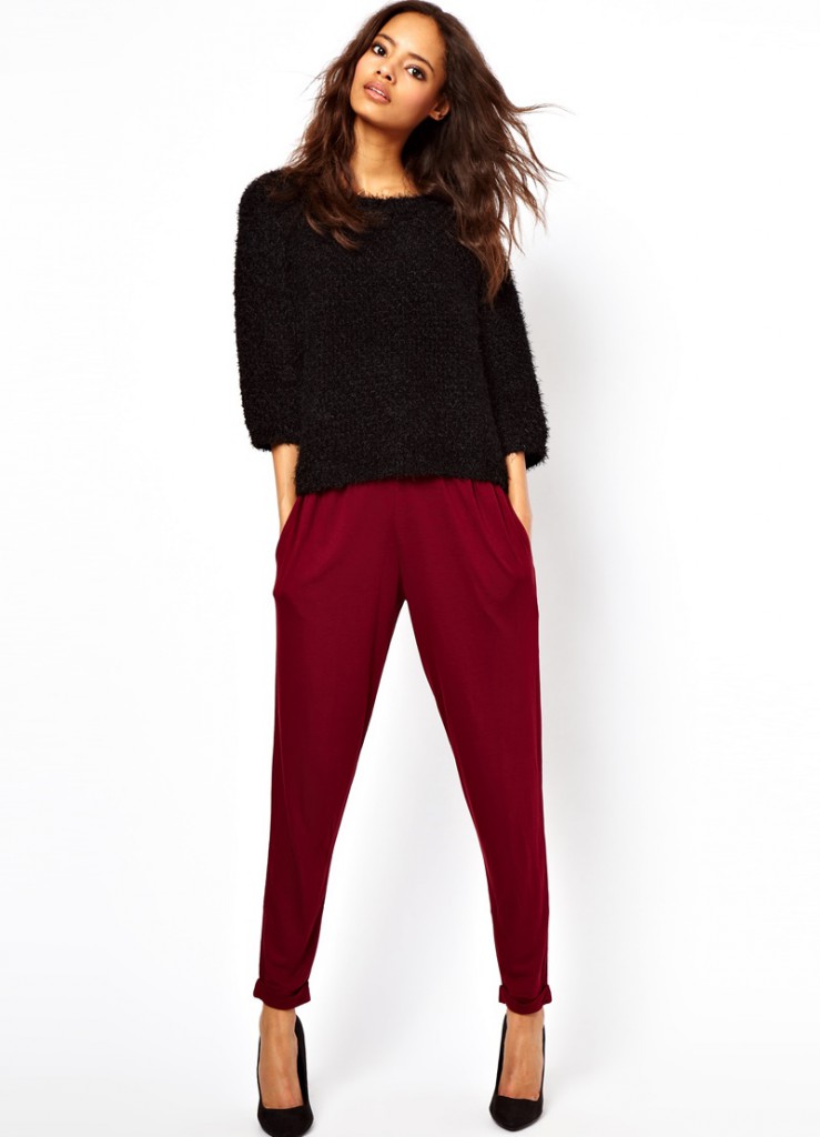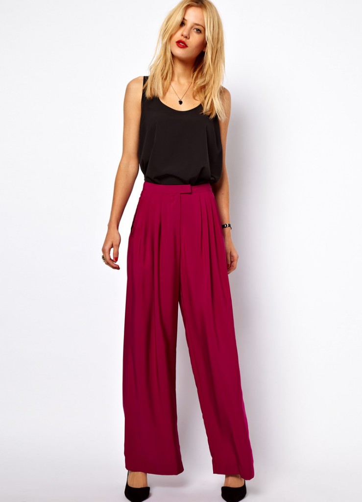 40-річна жінка може дозволити собі такі штани — прямі розкльошені від стегна, завужені брюки, але не облягаючі. Моделі з заниженою талією небажані в гардеробі жінки старше 40 років. Особливо це стосується повних жінок. Брючний костюм стане вдалим вибором для офісних буднів. Для повних жінок підійдуть модні штани з вертикальною смужкою. Вертикальна смужка підходить і для жінок невисокого зросту.