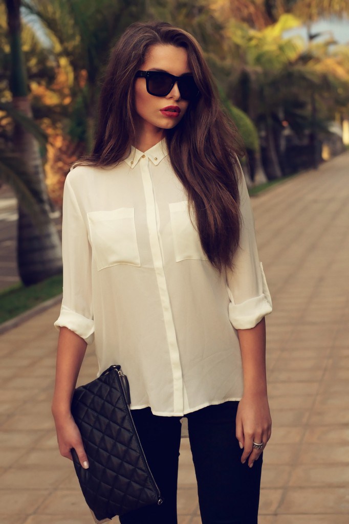 Якщо біла блузка не входить в Ваш гардероб з 10 предметів, варто задуматися. Навряд чи якась одяг може позмагатися з нею в можливості комбінування і способах носіння. Білою блузкою завжди можна замінити інші речі. Цей предмет стильного гардеробу вдало доповнює брюки, спідницю або діловий костюм.
