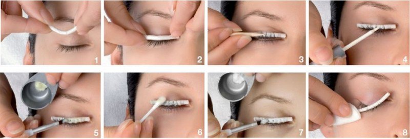 Взявши всі необхідні матеріали та інструменти для біозавивки вій, майстер діє за таким алгоритмом: