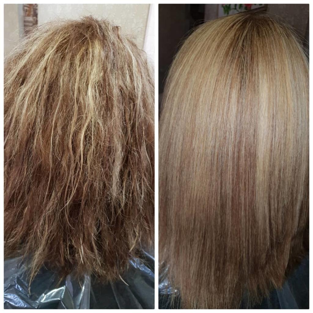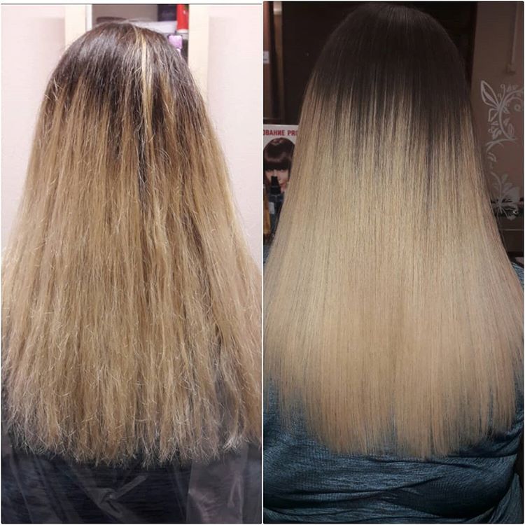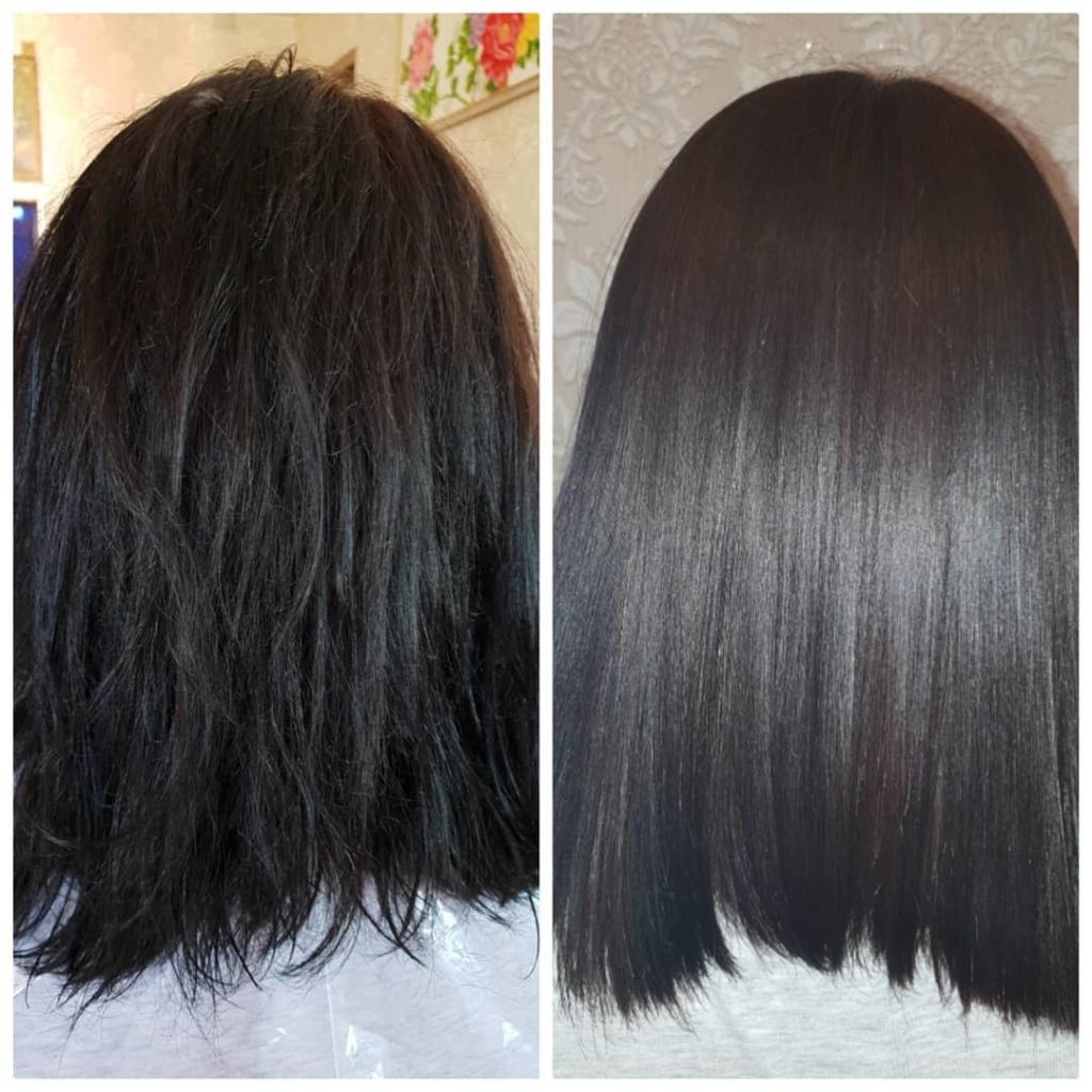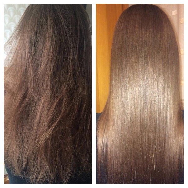 По закінченню часу впливу залишки препарату змиваються водою, пасма ретельно просушуються і виглядають рівними, сильними і блискучими.