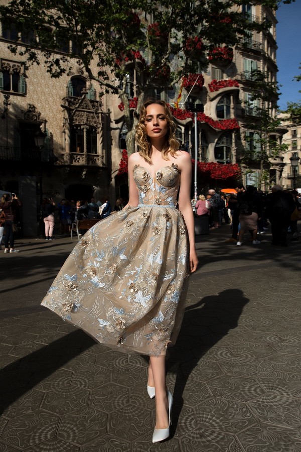 Чарівні сукні міді в ошатному вирішенні показані в колекціях дизайнерів у сезоні 2019-2020 роки з відкритими плечима і акцентом на грудях, ефектною пишною спідницею, приталеним і облягаючим варіантом низу міді сукні, а також з напівпрозорими елементами, мереживом і сіточкою, що надають загадковість і розкіш вечірнього образу.