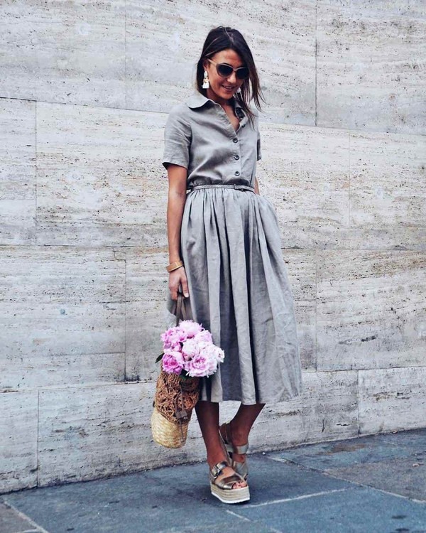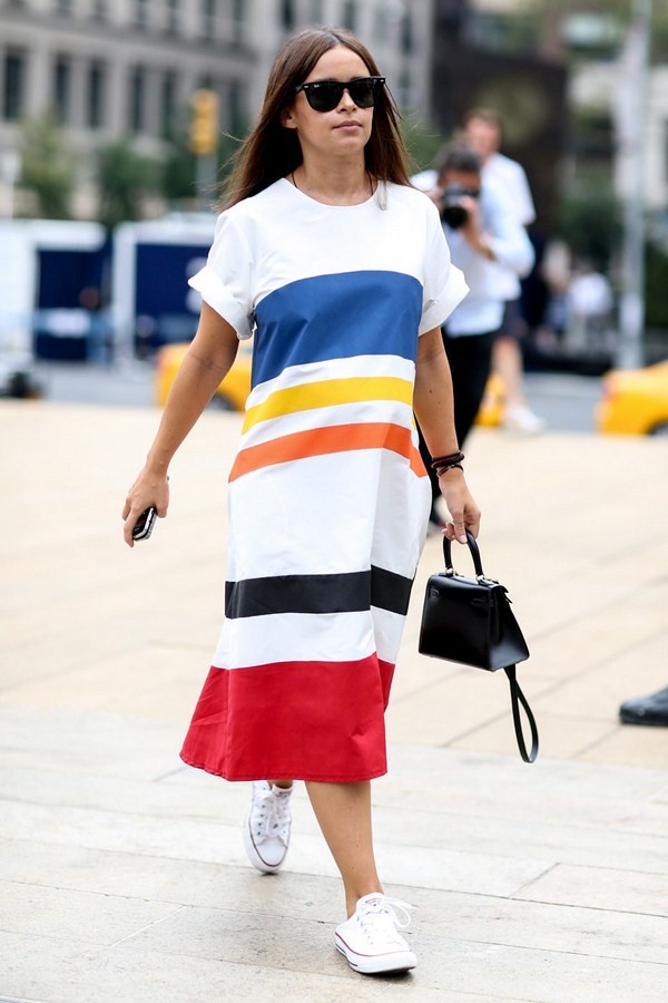Носити сукні міді в щоденному варіанті образів можна з кедами і кросівками, черевиками і оксфордами, слипонами і балетками, а також будь-який інший взуттям на низькому ходу. На додаток до міді суконь відмінно виглядатимуть маленька сумочка через плече або рюкзак, окуляри, бомбер або шкіряна або джинсова куртка.