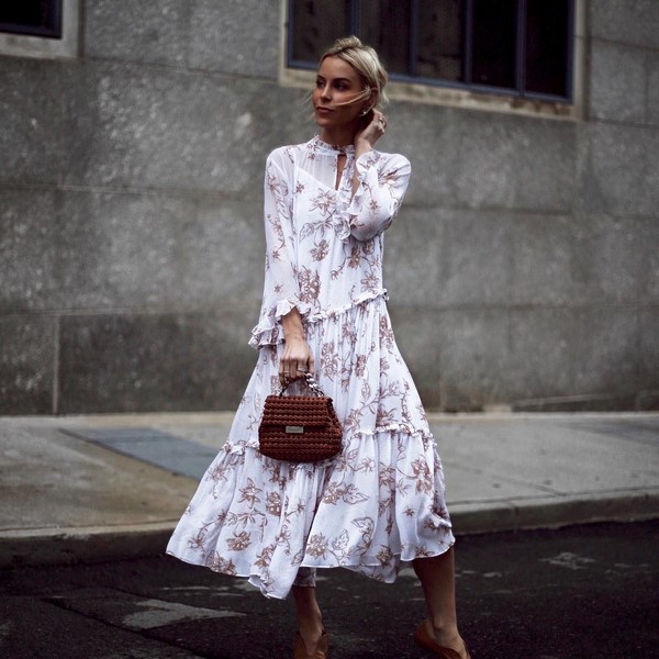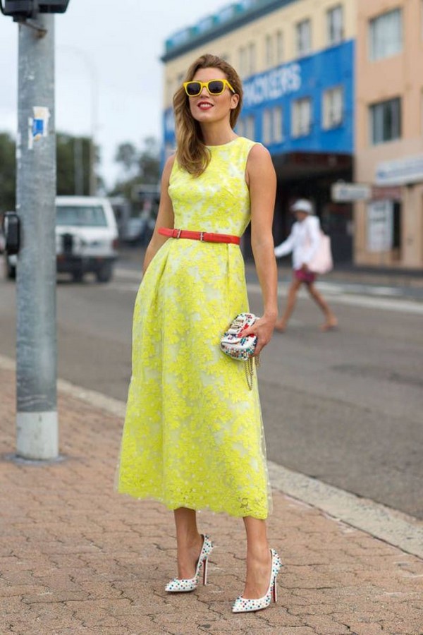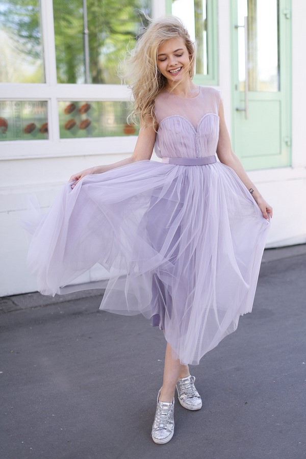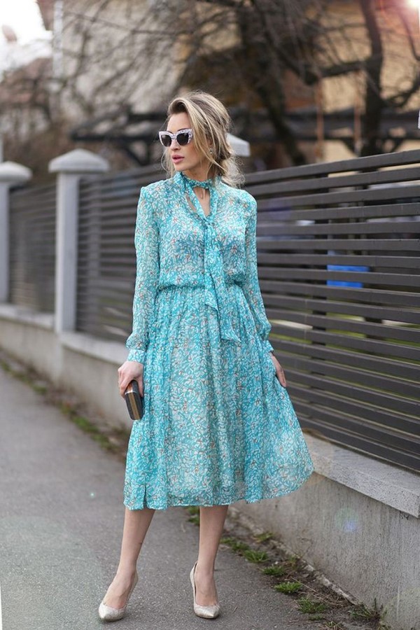 Романтичні і повітряні луки вийде виконати з міді сукнями з квітами, а от для вечора ідеальними будуть приталені сукні міді, і не менш цікавий варіант цибулі з сукнею міді з пишною спідницею, що можна з легкістю носити з кедами і кросівками.