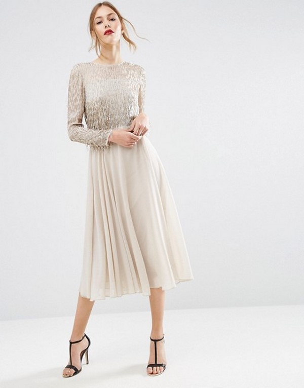 - вечірні сукні міді з пишною спідницею, а також міді плаття з розкішним декором і блиском металу;