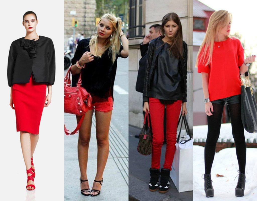 В принципі, червоний колір підходить для створення будь-яких колірних комбінацій. Головне правило: поєднувати одразу не більше трьох кольорів. Наприклад, можна носити червоне плаття з темно-зеленим кардіганом і бежевими туфлями.
