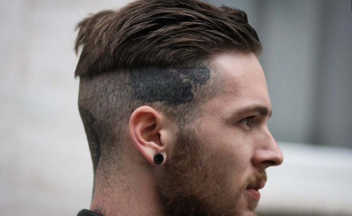 Модні чоловічі стрижки 2017. Більш екстремальний варіант-це стрижка «Undercut». В даному випадку практично повністю выбриваются віскі,