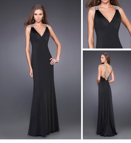 У цьому сезоні будуть дуже популярними моделі довгих чорних суконь з глибоким декольте або срібними деталями на плечах або смуги.