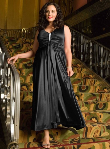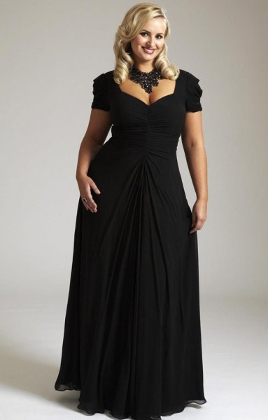 Повної леді можна спробувати і такий варіант чорного плаття, яке відкриває зону декольте і привертає увагу до основних «принад» жіночої краси і привабливості!