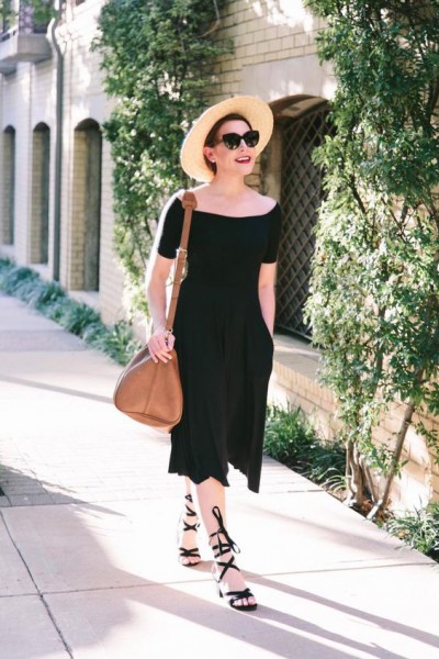 Для довгих прогулянок з друзями чорне плаття теж буде доречним. Варто надіти маленьку грайливу капелюх-казанок, взутися в грубі черевики в стилі мілітарі і доповнити образ кожанкой або джинсової жилеткою.