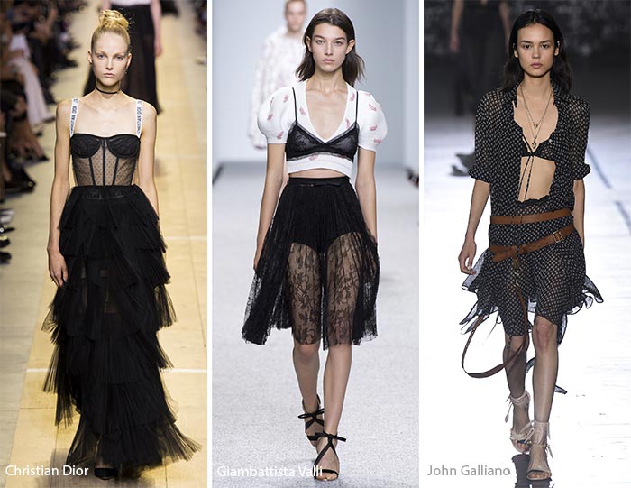 В цьому році глибокі декольте, довгі шлейфи, «риб’ячі хвости» і мереживо будуть особливо актуальні в моделях довгих чорних суконь.