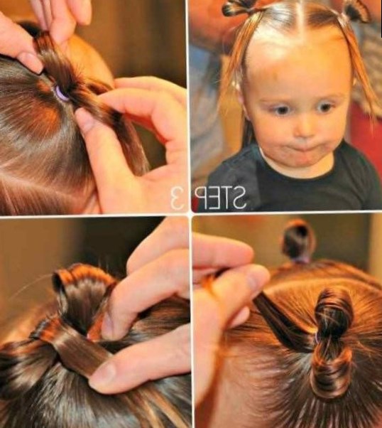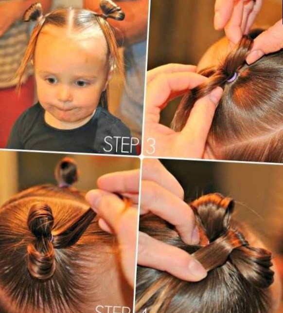 На фото показані прості дитячі зачіски для дівчаток на короткі волосся. Ніяких спеціальних навичок не потрібно: все робиться тільки з допомогою хвостиків