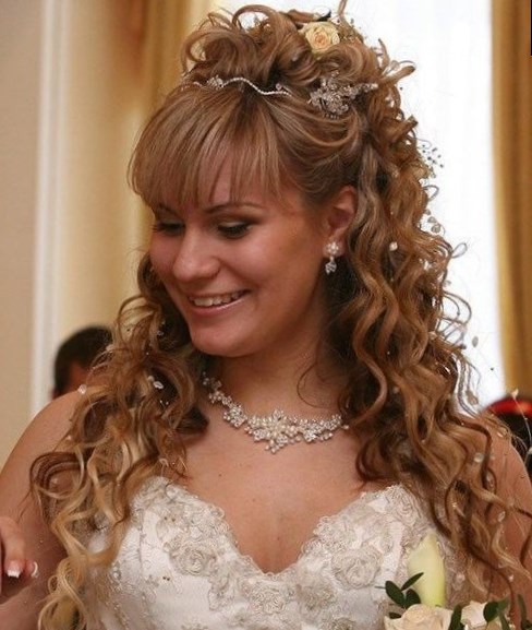 Чубчик у весільної зачіски на довге волосся може відкоригувати особу і надати обличчю нареченої яскравості і