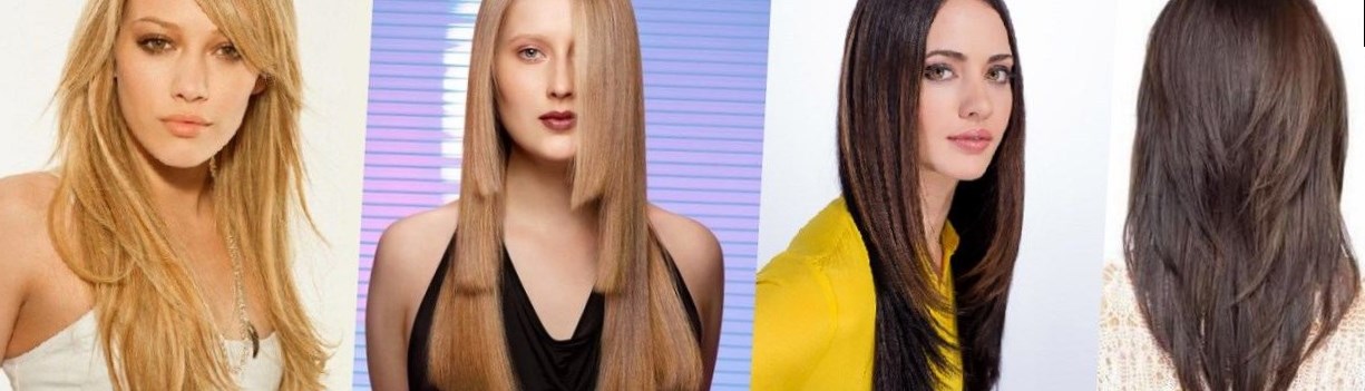Для зачісок каре з довгим волоссям — стилістами пропонується відпрасована гладкість волосся з прямим проділом волосся, забраними в зручний бік косим проділом