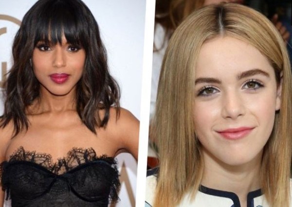 Стилісти роблять прямий кут зрізу, щоб підкреслити гарну форму укладання. Рвані стрижки на середні волосся можуть бути доповнені прямий або косою чубчиком.