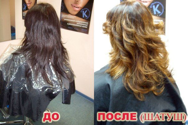 Нове віяння в хейр стайлінг — це фарбування шатуш на темне волосся, фото до і після процедури наочно продемонструють, наскільки удосконалився і змінився образ дівчат.