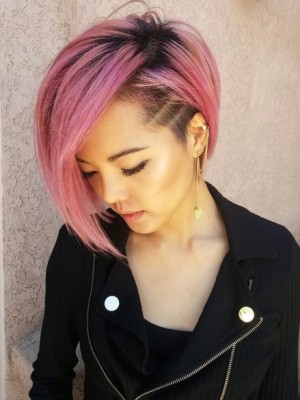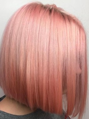 «Кава з вершками» або «зефір в шоколаді» – можна називати цю техніку як завгодно, але за фактом вона означає затемнені коріння і світлу довжину. На коротких волоссі стилісти рушили далі і пішли на захоплюючі експерименти з контрастом. Погляньте на фото-приклад – рожеві коріння, переходять у перловий блонд.