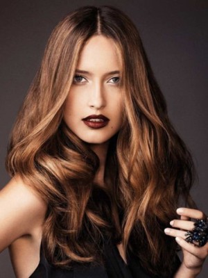 Цей тренд призначається для брюнеток. Теплий шоколад змішайте з карамеллю і милуйтеся золотисто-коричневими переливами. Техніка схожа з балаяжем, тільки світлих відтінків необхідно значно менше. Подивіться на камінь «тигрове око» і відразу зрозумієте пропорції.