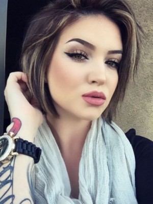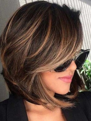 Світлі «промінчики» на більш темною базі прямо-таки шикарно виглядають на стильної стрижки з подовженою чубом! Зазвичай высветляют ділянки тільки спереду і вони чудово контрастують з більш темною потиличної частини.