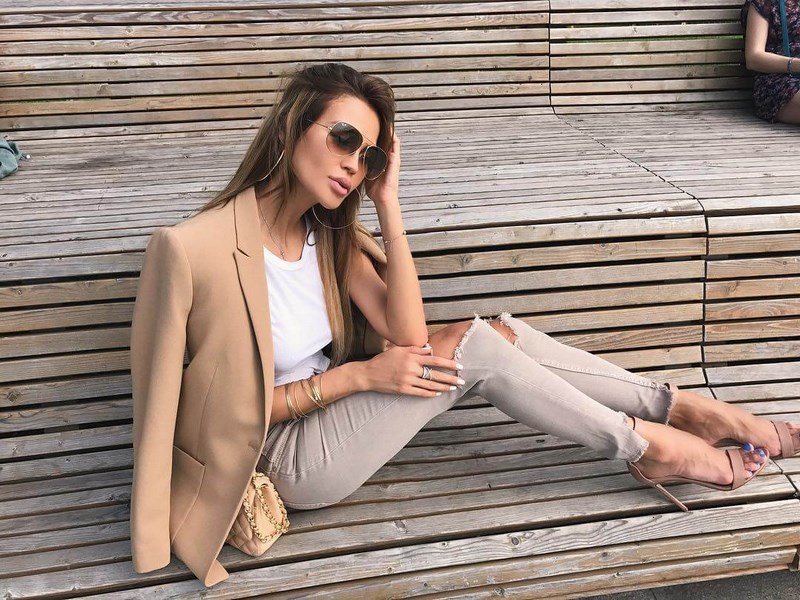 Неповторні образи весна-літо 2019-2020 роки для милих дам, що віддають перевагу стиль одягу casual, без утруднень можна повторити з джинсами бойфрендами, скінні, 7/8, в білому відтінку, з потертостями і завищеною талією, що популярні й актуальні для весняно-літнього сезону 2019-2020 роки.