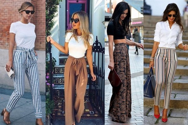 Для особливого випадку і вечірніх look’ів ідеальні штани палаццо, а також класичні типи штанів, прямі і укорочені брюки, які ви без зайвих зусиль зможете прикрасити елегантними топами і блузами з відкритими плечима, вигадливими рукавами і рюшами для романтичного образу весна-літо.