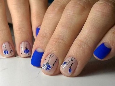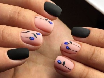 Матовим топом можна покрити сусідні нігтики або саме «поле для маневрів», тобто малюнків. Робите матовим фон, а потім на ньому виводите листочки і бутончики. Такий хід дозволить їм сильніше виділитися, і ваші вміння точно не залишаться не поміченими.