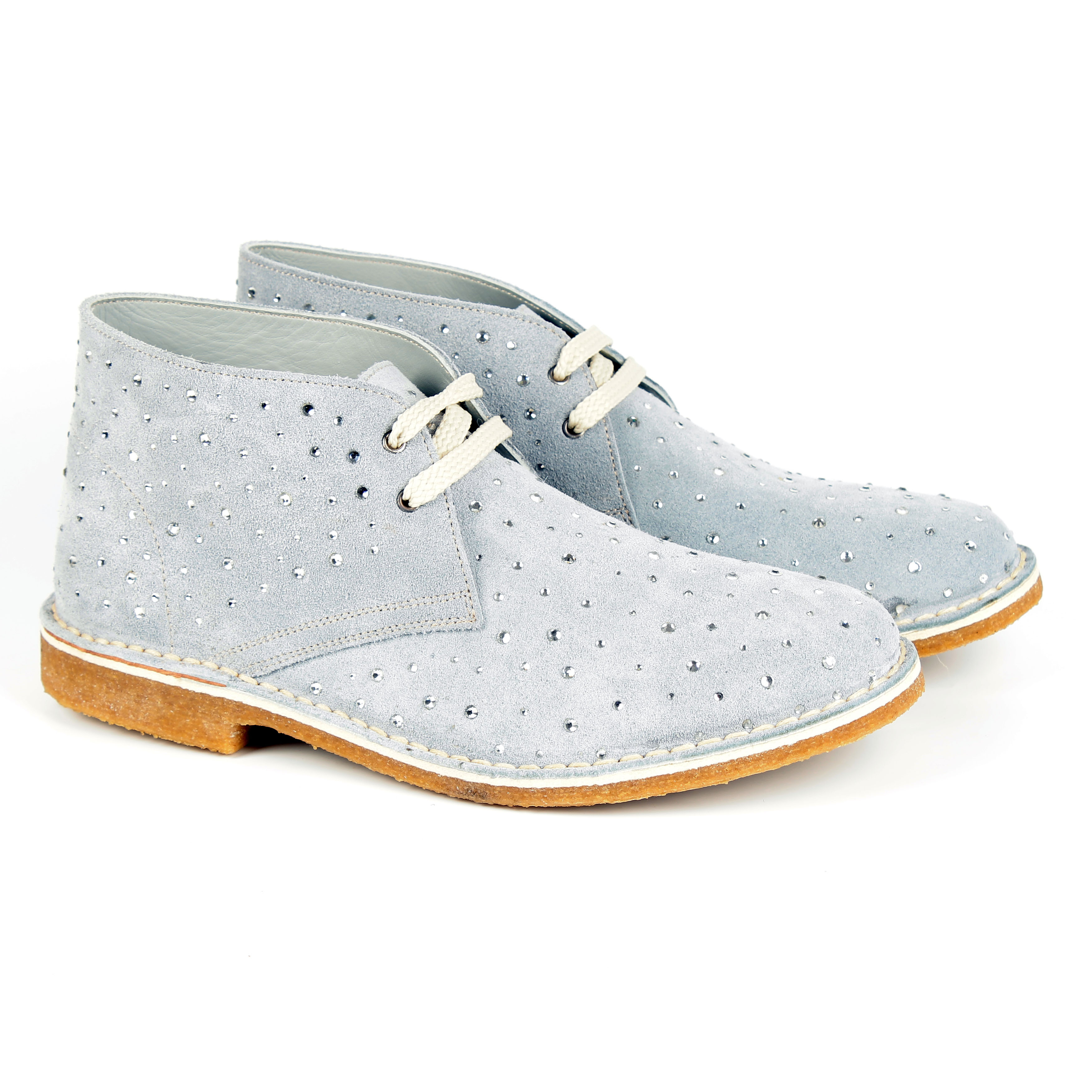 Обережно захоплюємо воскової паличкою зразу, наносимо на внутрішню поверхню крапельку клею і акуратно приклеюємо її до поверхні взуття у відповідності з лініями орнаменту. Після повного висихання клею протираємо м’якою сухою ганчірочкою готовий декор для того, щоб очистити стрази від залишків воску. Якщо халява шкіряних чобіт декорується тонким і витонченим візерунком з страз, то каблук можна обклеювати стразами повністю. І навпаки — тонка лінія страз на підборах буде прекрасно гармоніювати з широким орнаментом прикрашеного блискучими стразами халяви.
