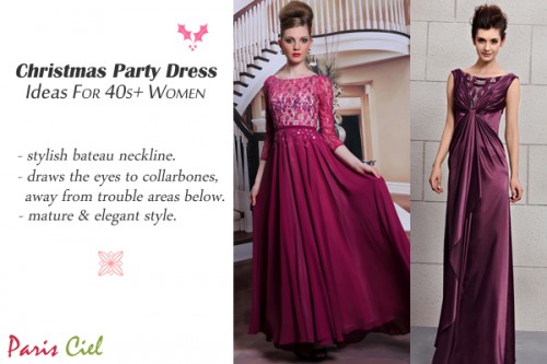 Різдвяне або новорічну сукню з вирізом-човником виглядає особливо стильно. Такий виріз притягує погляди до вашої ключиці, тим самим відволікаючи від інших недоліків. Цей виріз ніколи не вийде з моди. Він більше підходить зрілим жінкам.