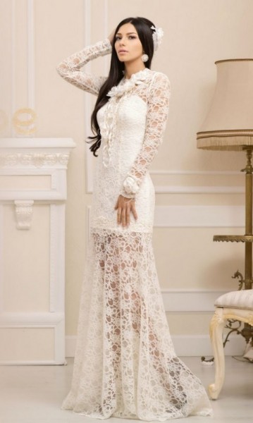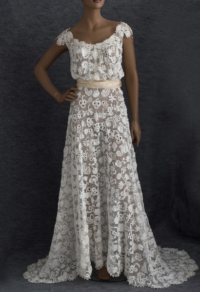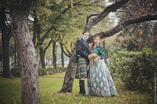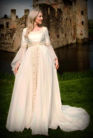 Це мрійливе плаття нагадує про стародавніх ірландських королев або чарівної королеві Мэев. Кельтські весільні сукні пошиті з шовку і білої оленячої шкури, а білизна з білого льону. Довге і сукня лягає до ніг нареченої. Великі, широкі рукави роблять схожою на наречену прекрасне створіння, коли вона піднімає руки. Шубка або довгий жилет з оленячої шкіри доповнює сукню. Крім слонової кістки, це ірландське весільну сукню може бути світло-бежевим або жовтим, кольору олії. Цього закінченим, пишного плаття не потрібен головний убір або вуаль. Також пропонуємо вам ознайомитися з статтею: Тенденції в світі весільної моди: Осінь 2016.