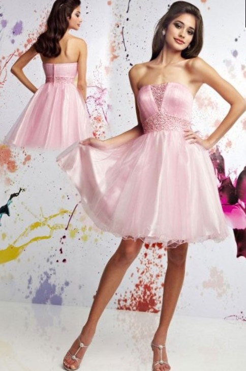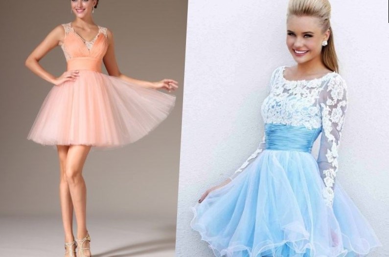 Короткі сукні дозволяють створювати трохи зухвалий і одночасно святковий образ, що відрізняється легкістю і ніжністю. Колір коротких суконь на випускний