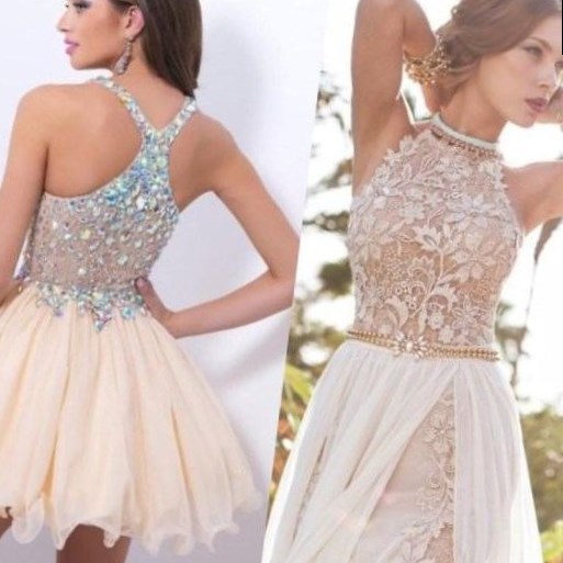 Про-образним шиї погони мереживні прикраси v-назад елегантний короткі сукні випускного вечора 2017