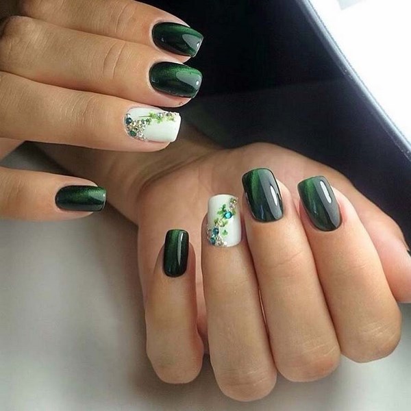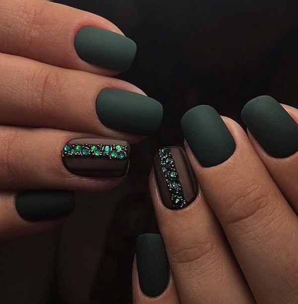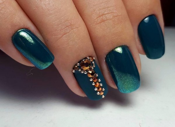 Кращі ідеї манікюру продемонстровані в темно-синьому, зеленому, шоколадному, червоному та бордовому кольорах. При цьому використовується безліч різних відтінків одного кольору, іноді схожі, а іноді і контрастні, що дозволяє розкрити всю глибину й оригінальність відтінку.