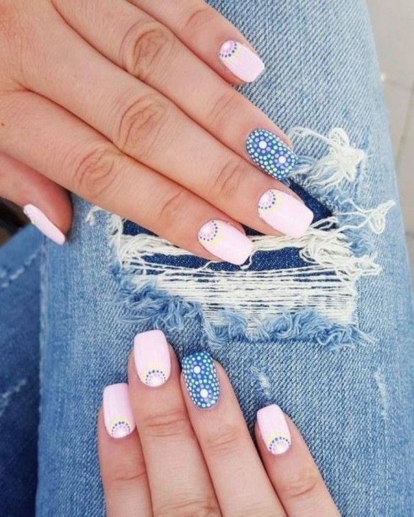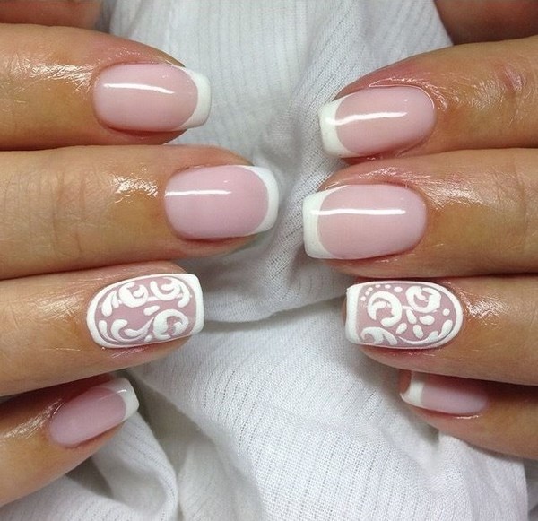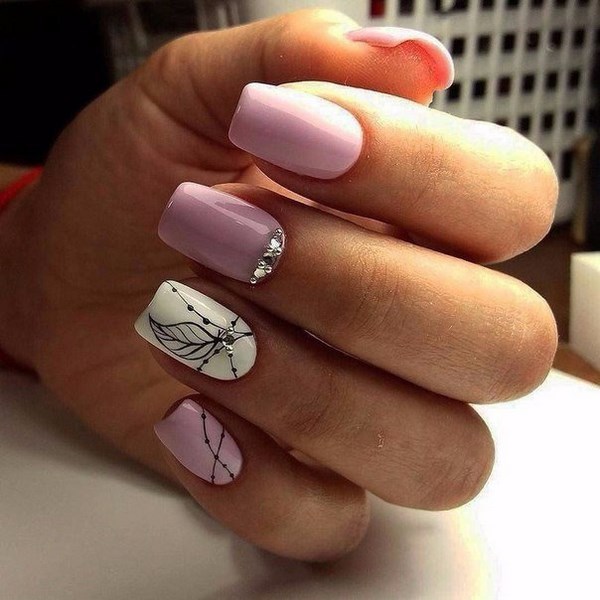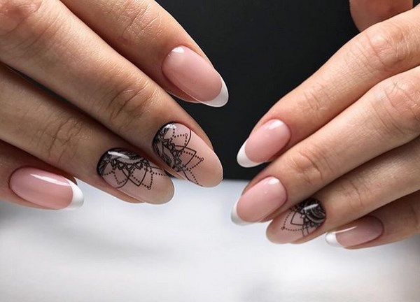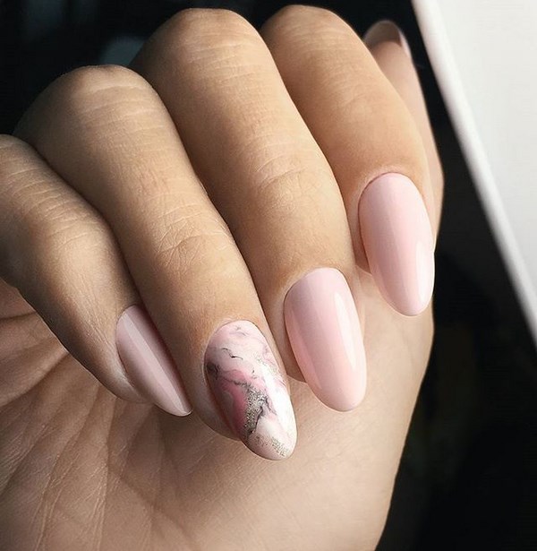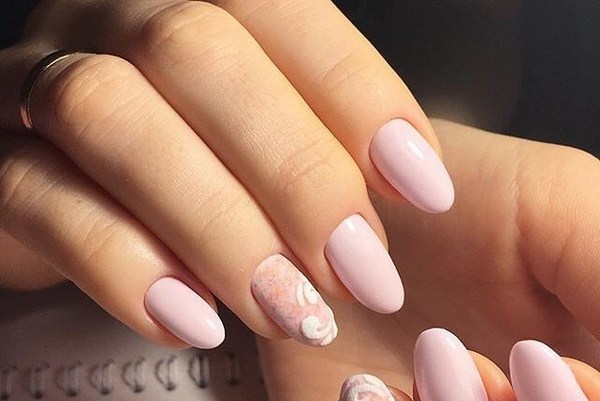 Будь то короткі або довгі нігтики, стильний і ніжний манікюр 2019-2020 роки однаково добре виглядає в будь-якому випадку. Для оригінальності зробіть на одному з пальчиків красиві і стильні візерунки, як на фото прикладі.