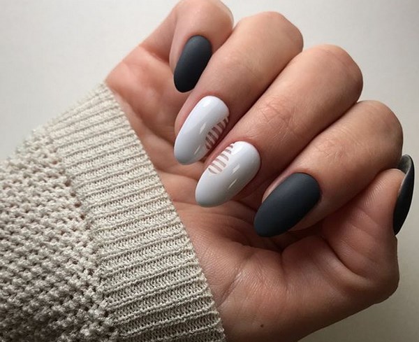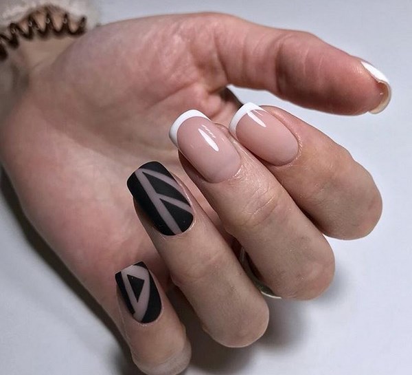 Неперевершений і чудовий манікюр в такому стилі ви можете створити, як у ніжних відтінках, так і темних кольорах гель лаку. Використовуйте також і матове покриття на всіх небудь одному-двох пальчиках, що додасть оригінальності модного манікюру.