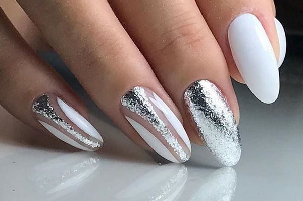 Гарний манікюр в оригінальному виконанні ви можете створити, використовуючи фольгу для манікюру, якою можна прикрасити частина нігтя або прикрасити один пальчик – як побажаєте. Модний манікюр в різних варіантах декору ви можете переглянути в нашій галереї в кінці статті.