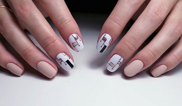 Модний манікюр в мінімалістичному стилі рекомендується виконувати в класичному біло-чорному кольорах, світлою і тілесної панелі, що дозволяють підкреслити витонченість даного виду нейл-арту.