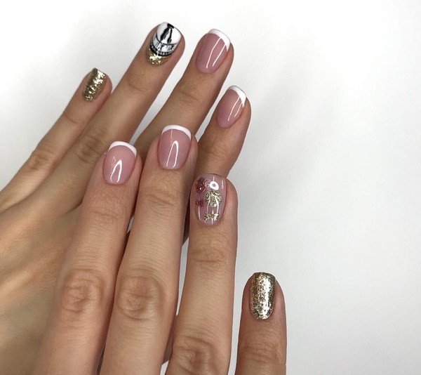 Майстри дивують різними ідеями трендового френча 2019-2020 в поєднанні з глітером, ефектними малюнками, фольгою і втирками, що дозволяють створювати дизайн нігтів в різних стилях і напрямках, втілюючи в реальність найвибагливіші запити чарівних панянок.