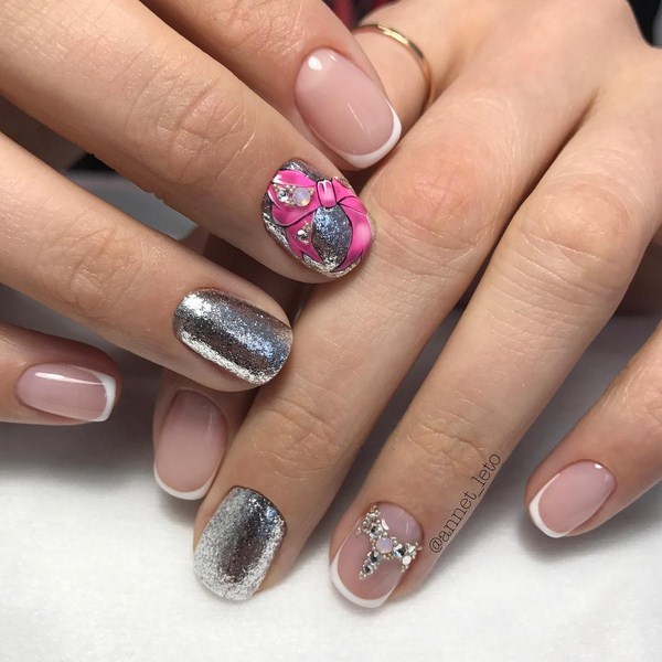 Багато фахівців показали модний френч з незвичайною посмішкою в металізованому стилі, що привертає увагу і виглядає по-новому і чудово. Доповнивши такий металізований модний французький манікюр ніжними тонами гель-лаку, ви отримаєте стильний і красивий манікюр.
