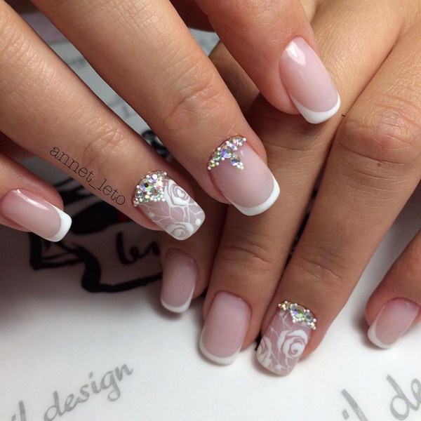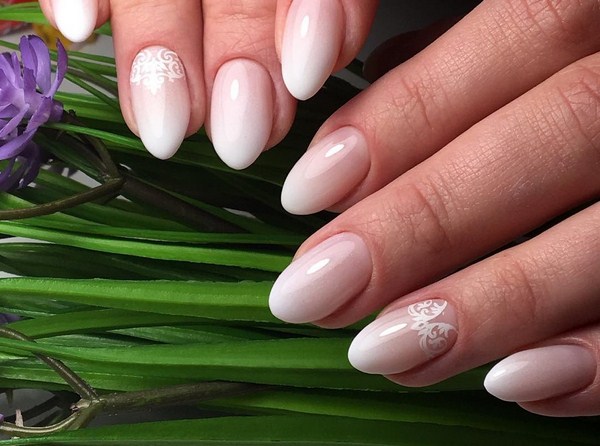 Чарівний французький манікюр омбре ідеальний для образів наречених, завдяки своїй вишуканості і ніжності. Сміливо можете прикрасити пару пальчиків стразами або мереживними візерунками для додання романтичності.