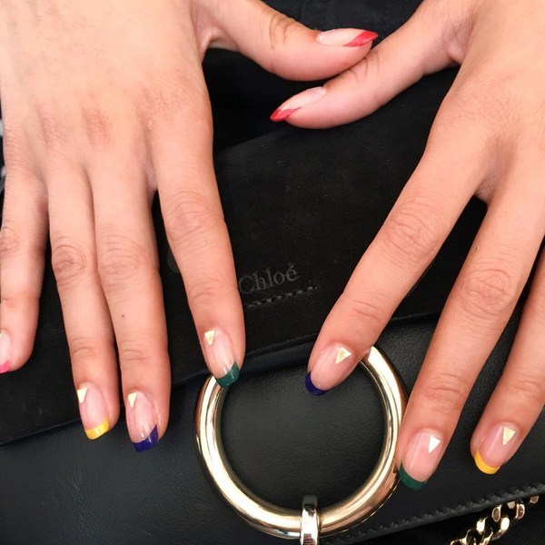 На сьогоднішній день ви можете сміливо вибирати дивовижний модний френч не тільки з білою «посмішкою», але також і чорної, що надає особливу ефектність французькому дизайну. Більш веселий і невимушений модний френч ви отримаєте з кольоровим краєм – жовтим, синім, червоним і будь-яким іншим вподобаним вам відтінком або ж різнокольоровими краями.