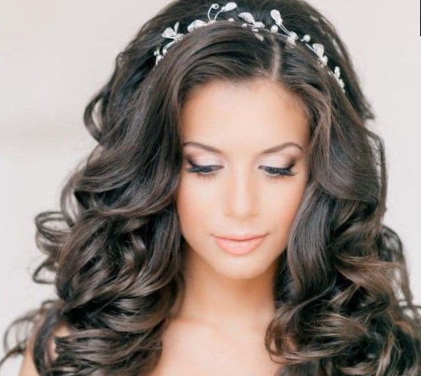 Якщо у вас красива чубчик і довгі, кучеряві або пряме волосся, то можете прикрасити зачіску на весілля акуратною діадемою. Так ви зможете зробити образ