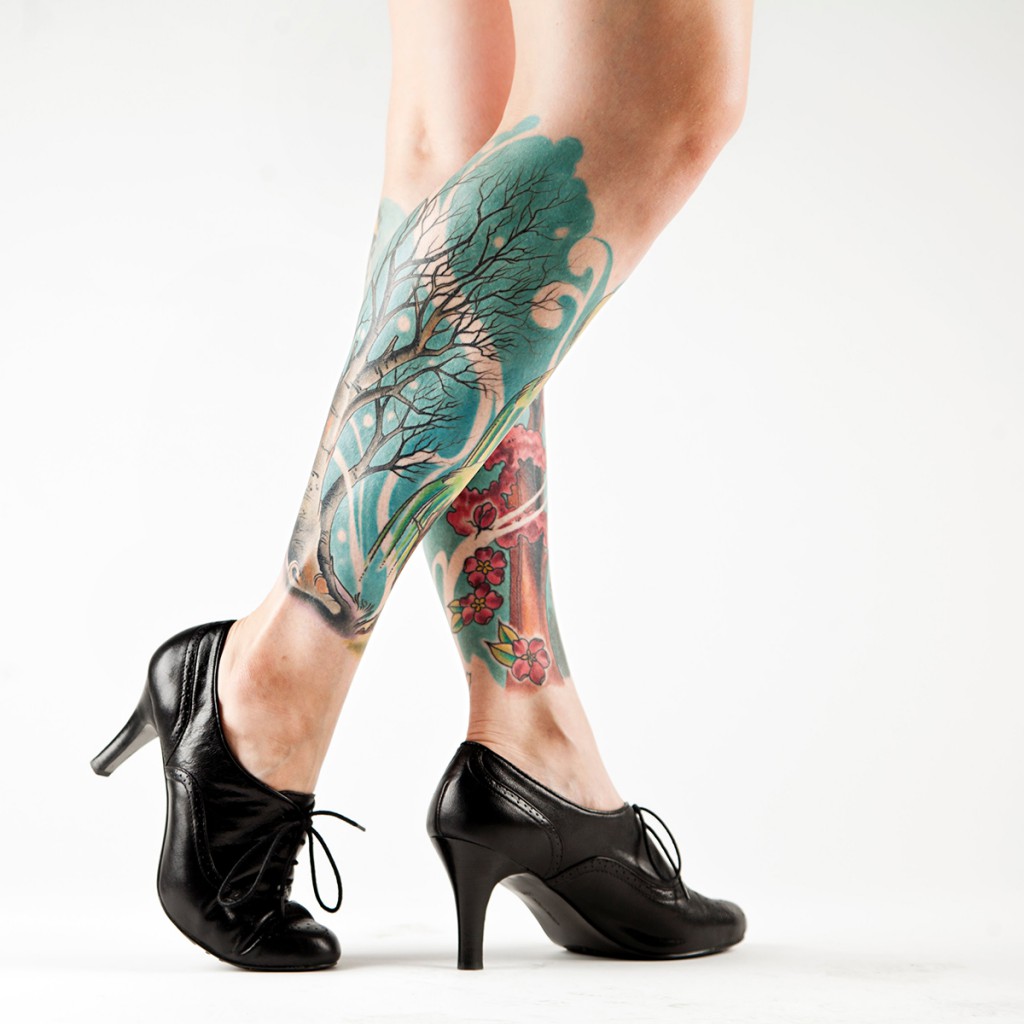Малюнки, розташовані в цих областях не повинні розташовуватися по всій нозі і бути порівняно невеликого розміру. На довгих жіночих ніжках чудово будуть виглядати зображення змій і драконів, пір’я красивих птахів і татуювання подібної тематики.