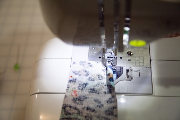 - Прострочіть всі три стрічки на відстані 2 см знизу. Незважаючи на те, що це може здатися складним на перший погляд, вам допоможе притискна лапка з механізмом підрубки тканини.