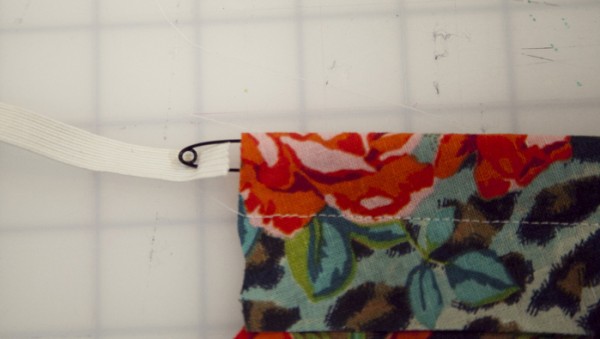 - Повторіть крок 13 для кожної із сторін. Виконайте те ж саме і для гумки довжиною 14 см по плечах.